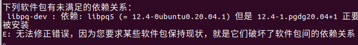 libpq-dev : 依赖: libpq5 (= 12.4-0ubuntu0.20.04.1) 但是 12.4-1.pgdg20.04+1 正要被安装